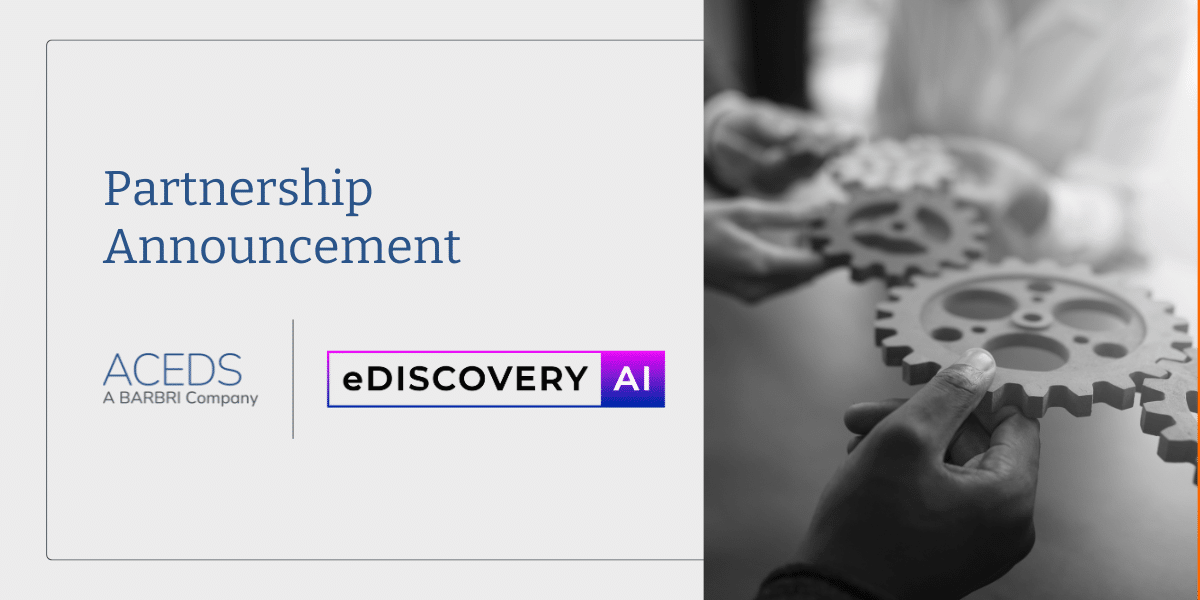 April 30, 2025 – Dallas, TX – The Association of Certified E-Discovery Specialists (ACEDS), the world’s leading e-discovery training and certification professional association and part of BARBRI Global, announced a new Affiliate Partnership with eDiscovery AI, a forward-thinking legal technology company specializing in AI-powered data intelligence solutions. This strategic partnership reinforces ACEDS’ commitment to equipping legal professionals with cutting-edge tools, education, and a collaborative community designed to navigate the evolving challenges of discovery, privacy, and compliance.